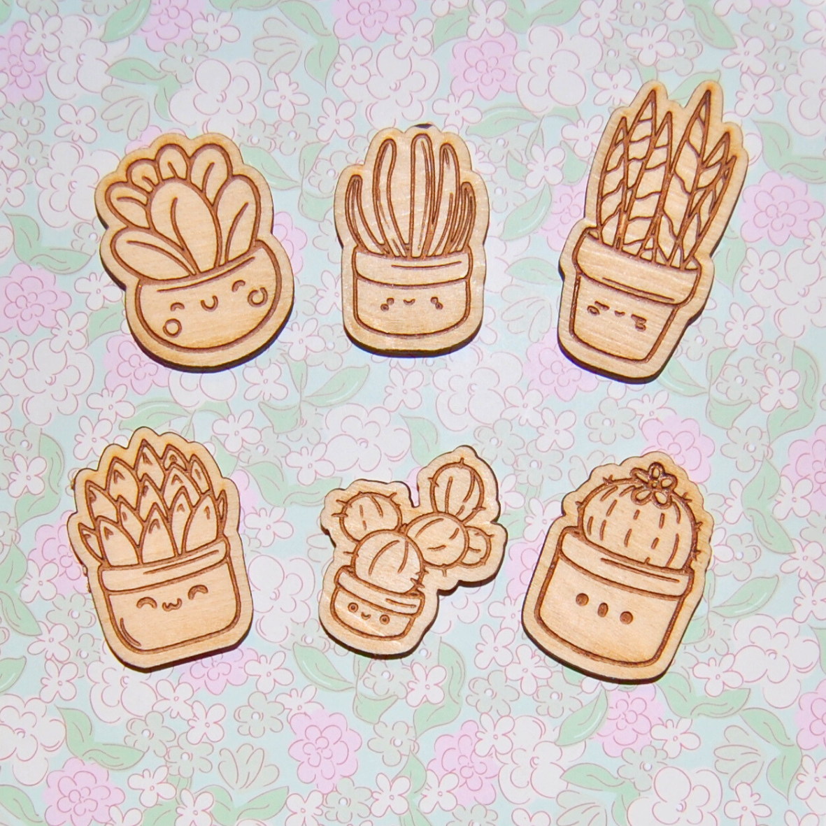 Sechs Sukkulenten-Holzmagnete – in plants we trust.