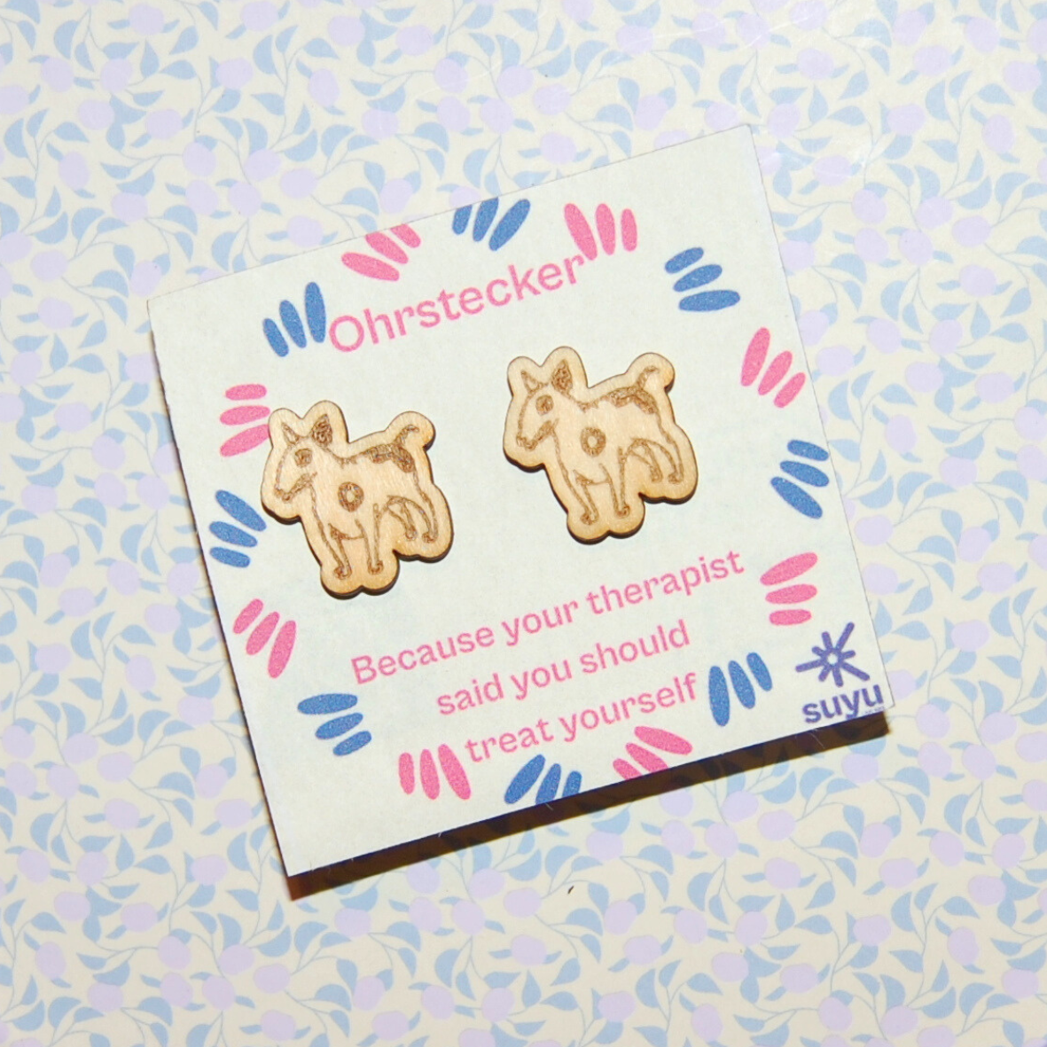 Der Ohrstecker besteht aus 2mm dickem Lindenholz und nickelfreiem Edelstahl.