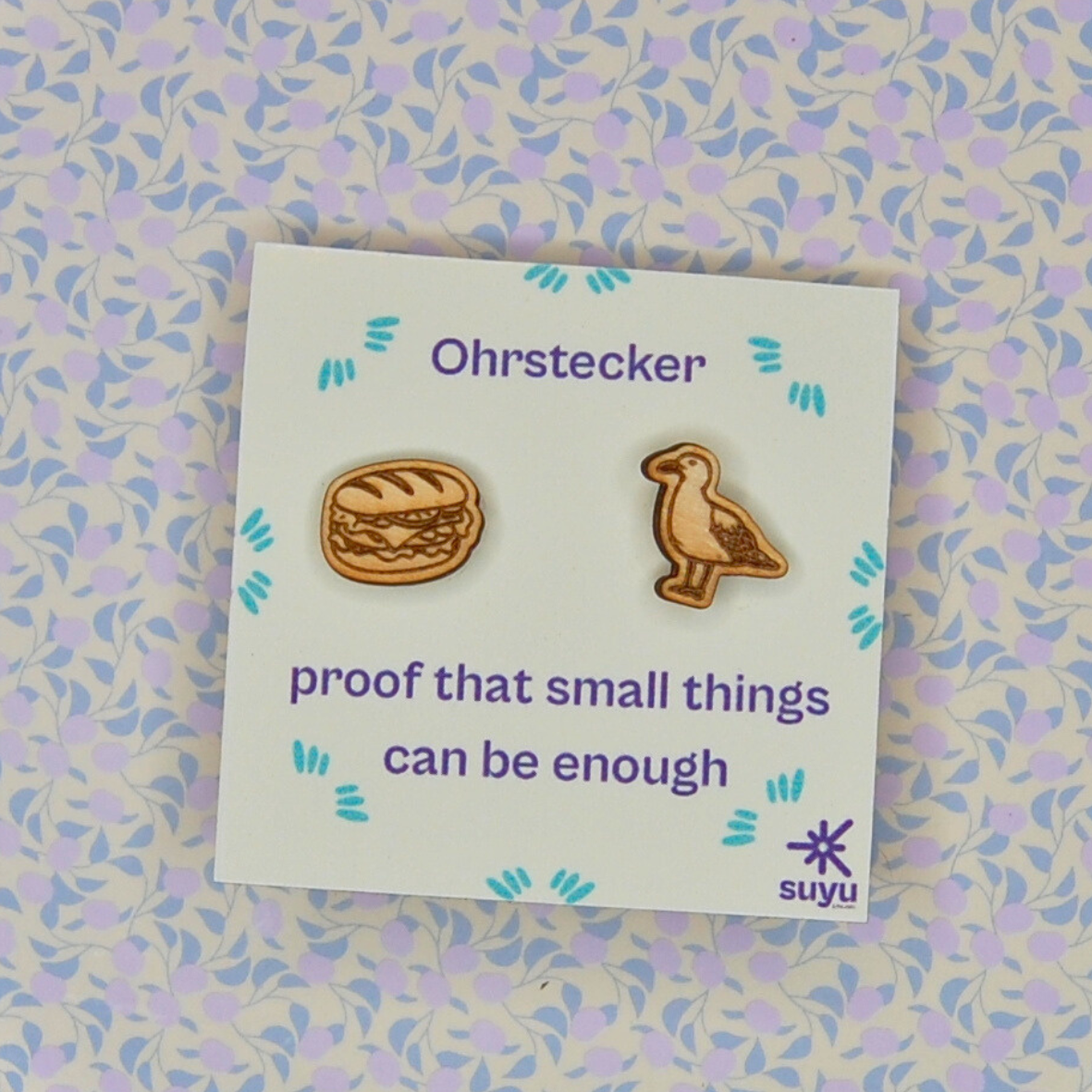 Der Ohrstecker besteht aus 2mm dickem Lindenholz und nickelfreiem Edelstahl.