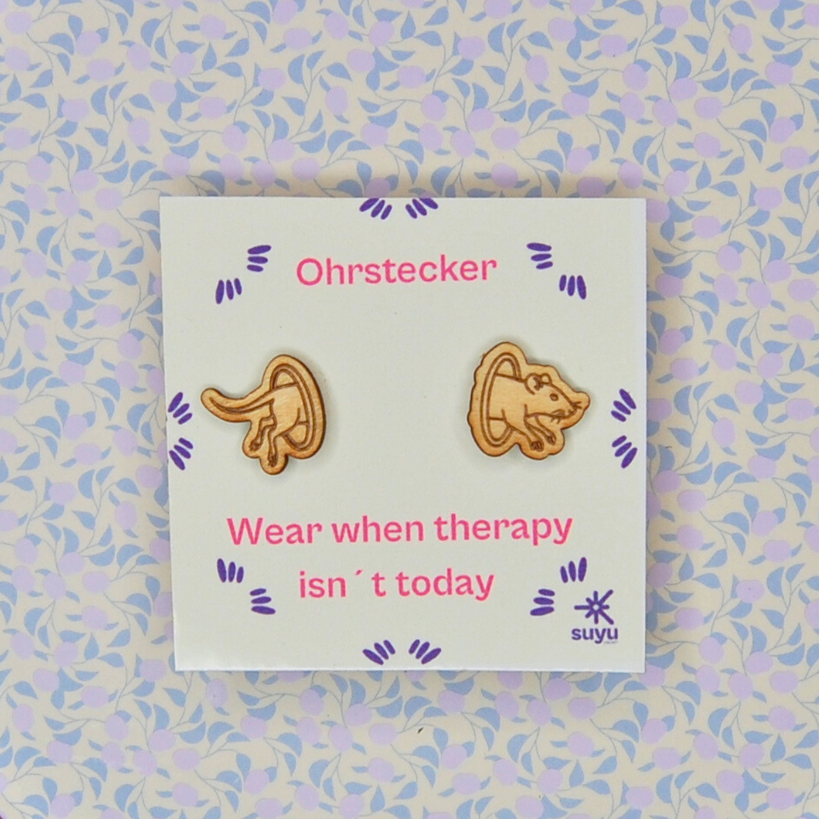 Der Ohrstecker besteht aus 2mm dickem Lindenholz und nickelfreiem Edelstahl.