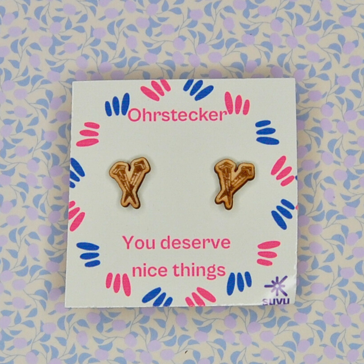Der Ohrstecker besteht aus 2mm dickem Lindenholz und nickelfreiem Edelstahl.