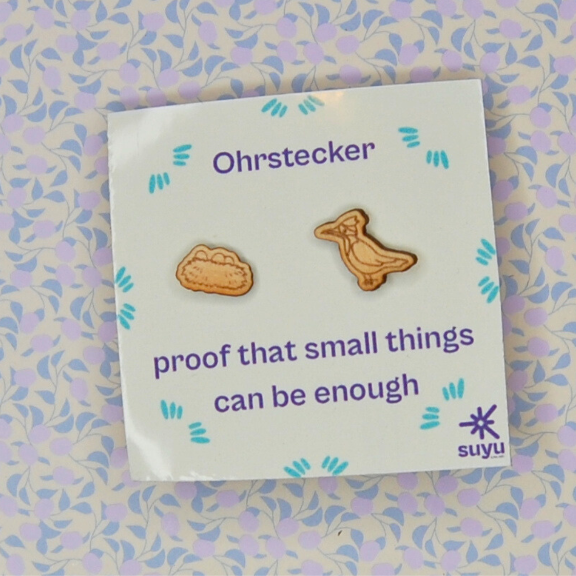 Der Ohrstecker besteht aus 2mm dickem Lindenholz und nickelfreiem Edelstahl.