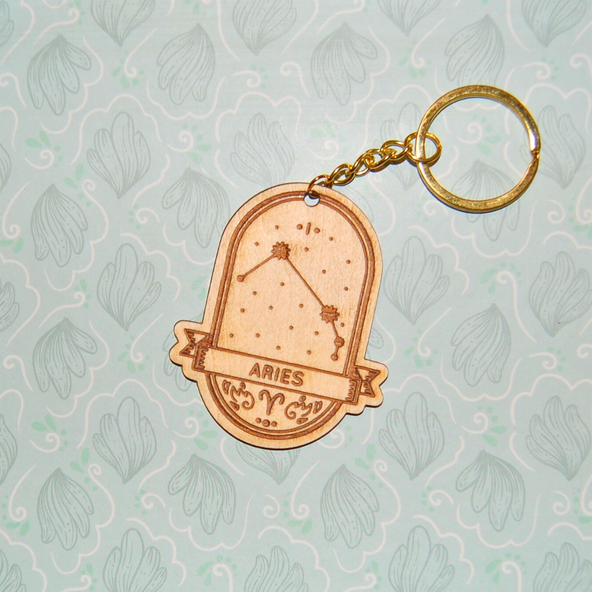 Handgefertigte Holzanhänger mit Sternzeichen-Motiven. Für Astrofans und Kosmoskinder. In 12 Varianten.
